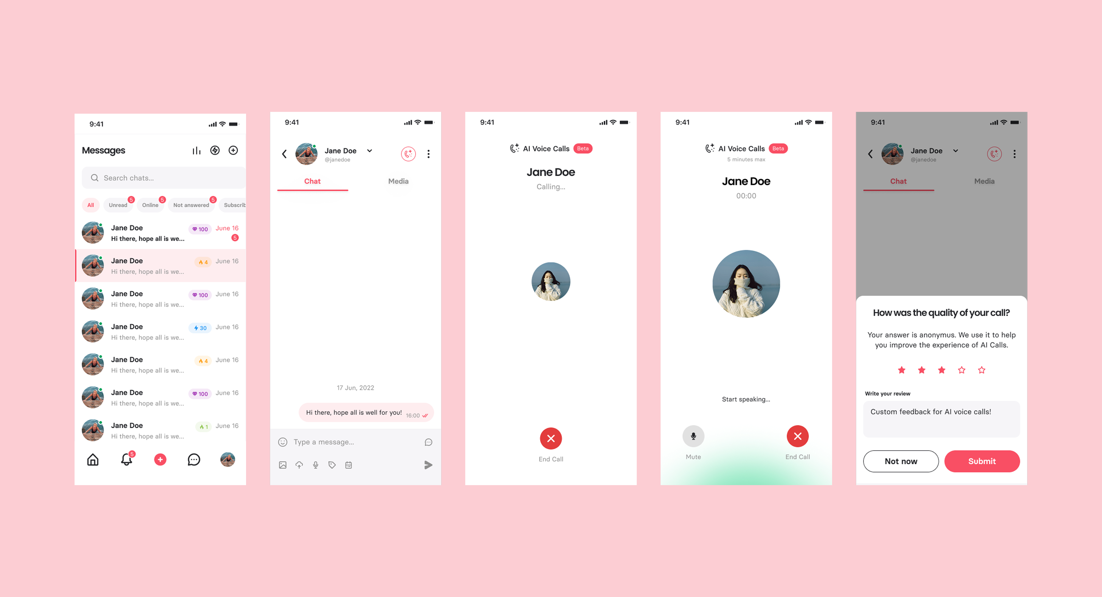 Experience AI-powered voice calls on Fanvue.com. Offering creators a dynamic way to engage with fans in real-time.